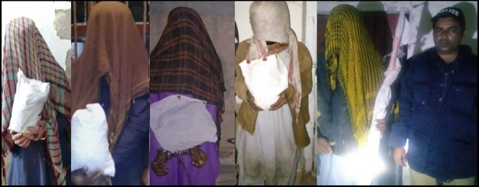1010گرام چرس،1050 پڑیاں گٹکا ماوا ،155 بیگ دیسی شراب ،2200 پڑیاں سفینہ اور ایک رکشہ برآمد