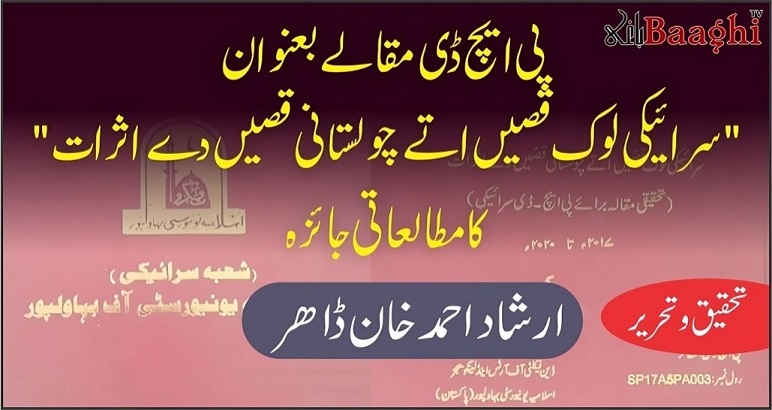 پی ایچ ڈی مقالے بعنوان "سرائیکی لوک قصے اتے چولستانی قصے دے اثرات” کا مطالعاتی جائزہ