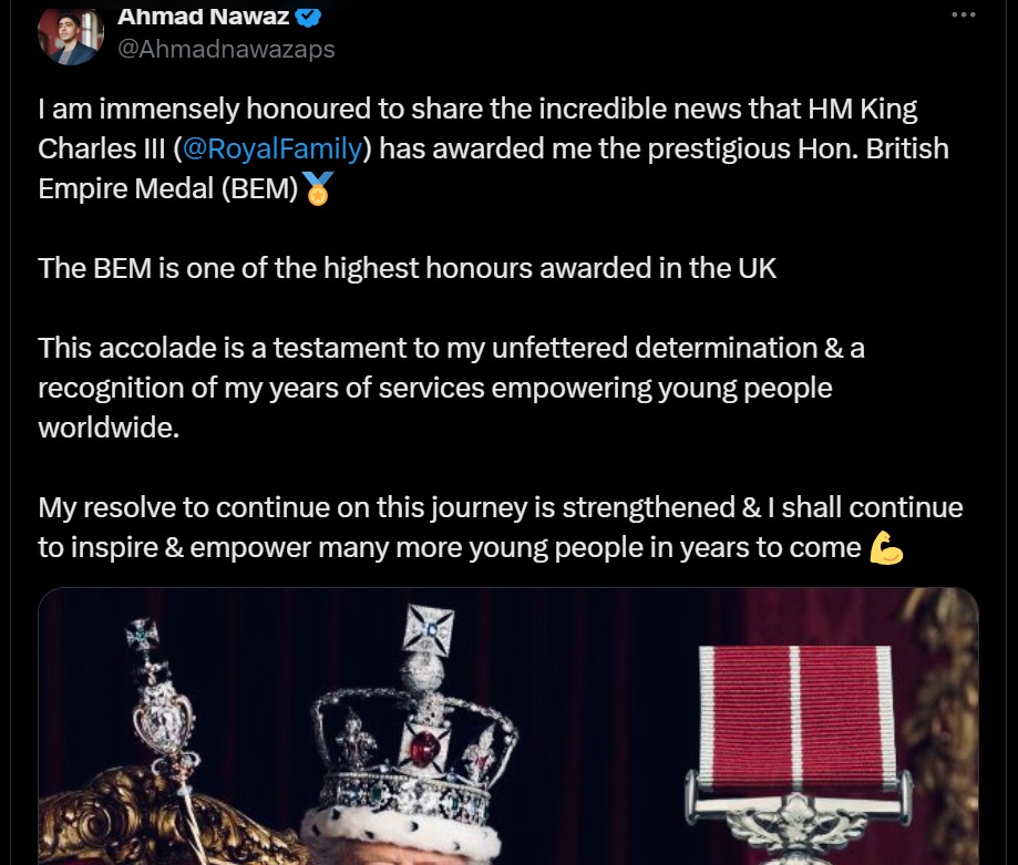احمد نواز کو برٹش ایمپائر میڈل کا اعلان: ایک دلخراش داستان اور خوشی کی خبر