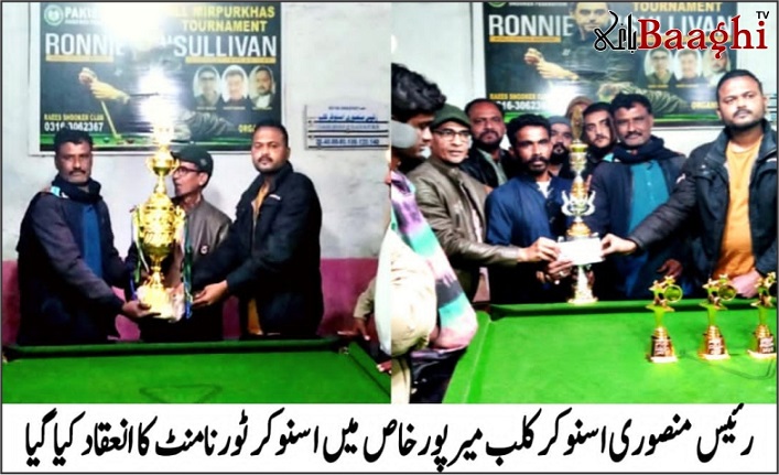 میرپورخاص ،باغی ٹی وی(نامہ نگارسیدشاہزیب شاہ) رئیس منصوری اسنوکر کلب میرپورخاص میں آل میرپورخاص اسنوکر ٹورنامنٹ کا انعقاد کیا گیا، جس میں نوجوان کھلاڑیوں نے بھرپور شرکت کی۔