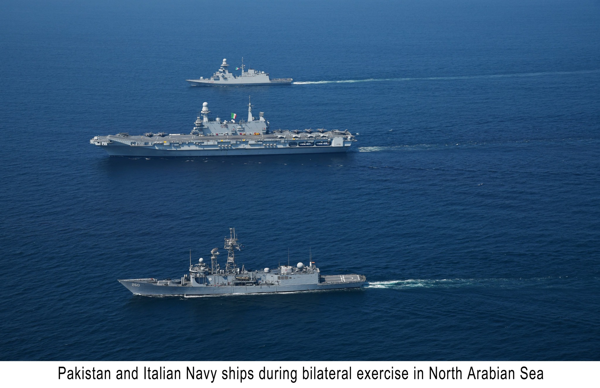 اطالوی بحریہ کے ائیر کرافٹ کیرئیر ITS CAVOUR اور فریگیٹ ITS ALPINO نے 14 سے 16 اکتوبر تک کراچی کا دورہ کیا اور شمالی بحیرہ عرب میں دوطرفہ مشقیں کیں،مشق کا مقصد سمندر میں مشترکہ آپریشنز کے دوران باہمی پیشہ ورانہ صلاحیتوں اور مہارت کو بڑھانا تھا۔