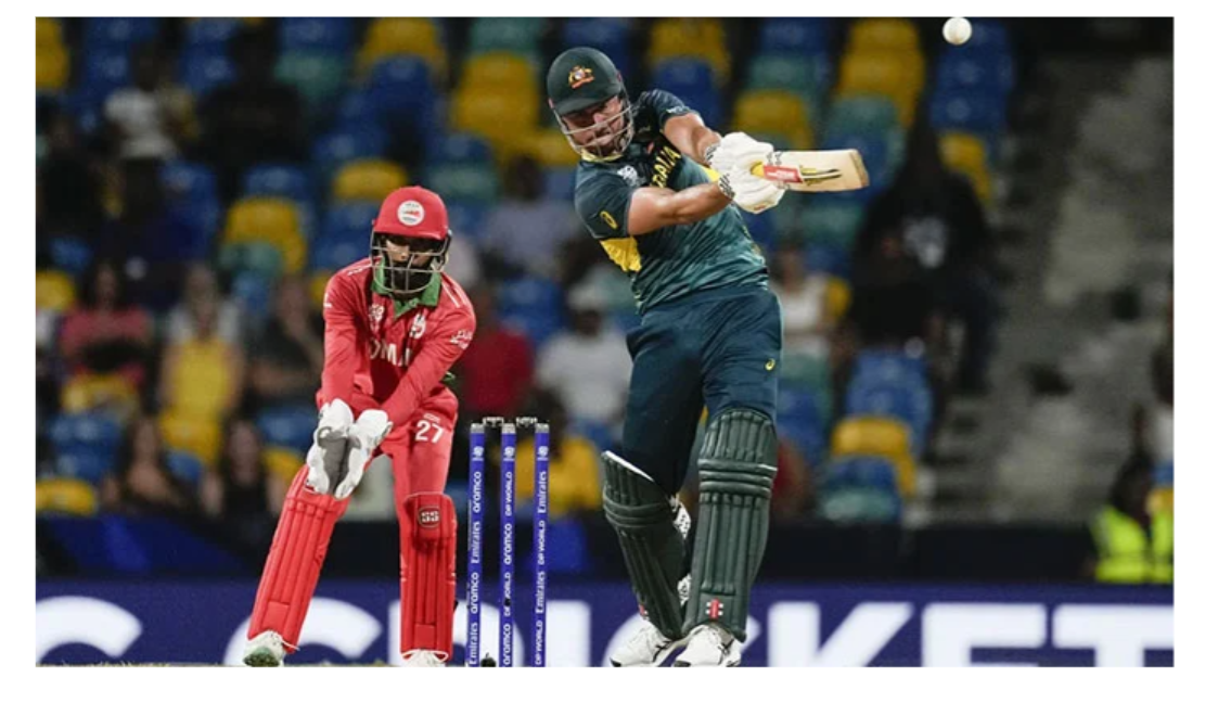عمان کے خلاف آسٹریلیا نے پہلے بیٹنگ کرتے ہوئے مقررہ 20 اوورز میں 5 وکٹ کے نقصان پر 164 رنز اسکور کیے،ٹی ٹوئنٹی ورلڈ کپ کے گروپ بی کی دونوں ٹیمیں بارباڈوس کے شہر برج ٹاؤن میں کنسنگٹن اوول اسٹیڈیم میں آمنے سامنے تھیں، دونوں ٹیموں نے بین الاقوامی کرکٹ میں پہلی مرتبہ ایک دوسرے کا سامنا کیا۔