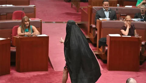 آسٹریلیا میں دائیں بازو کی انتہا پسند سینیٹر پالین ہینسن نے پارلیمنٹ میں برقع پہن کر شدید ہنگامہ کھڑا کردیا۔