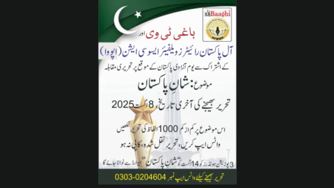 آل پاکستان رائیٹرز ویلفیئر ایسوسی ایشن(اپووا) اور باغی ٹی وی کے زیر اہتمام شان پاکستان تحریری مقابلے کے نتائج کا اعلان کر دیا گیا،