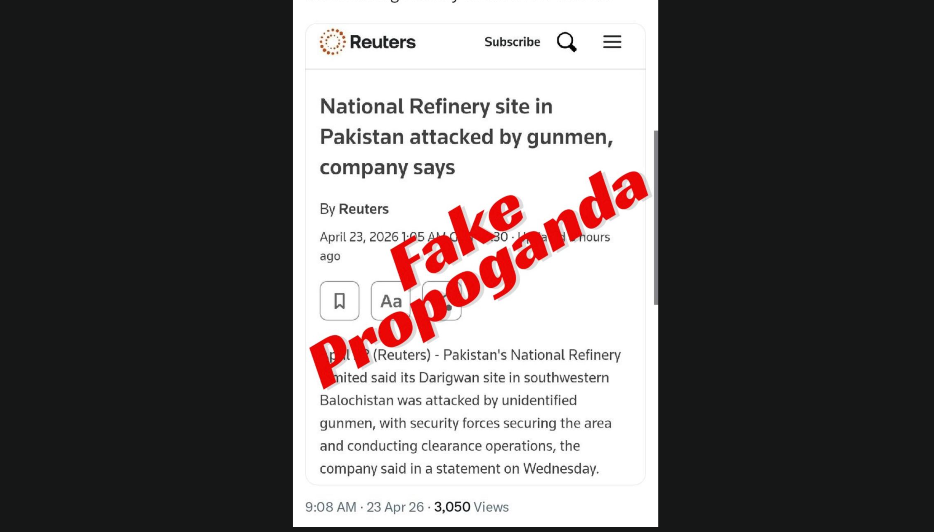 غیر ملکی خبر رساں ادارے رائیٹرز نے بلوچستان میں‌ دہشت گردوں کے خلاف کاروائی کے حوالہ سے فیک رپورٹنگ شروع کر دی،