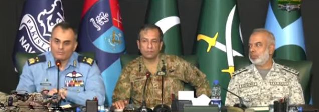 باغی ٹی وی کے مطابق پاکستان ایئر فورس اور پاکستان نیوی کے سینئر افسران کے ساتھ نیوز کانفرنس کرترے ہوئے ڈی جی آئی ایس پی آر نے کہا کہ پہلگام واقعے کو جواز بنا کر بھارت نے پاکستان پر سیاسی اور عسکری دباؤ ڈالنے کی کوشش کی، مگر اس واقعے کے حوالے سے بھارت کا مؤقف ناقابلِ یقین، غیر منطقی اور ثبوت سے عاری ہے۔ انہوں نے کہا کہ پہلگام واقعہ بھارتی زمین پر پیش آیا، جہاں سے سرحد کا فاصلہ 230 کلومیٹر ہے اور پولیس کی جائے وقوعہ پر موجودگی اور فوری ایف آئی آر کا اندراج انسانی طور پر ممکن نہیں تھا۔