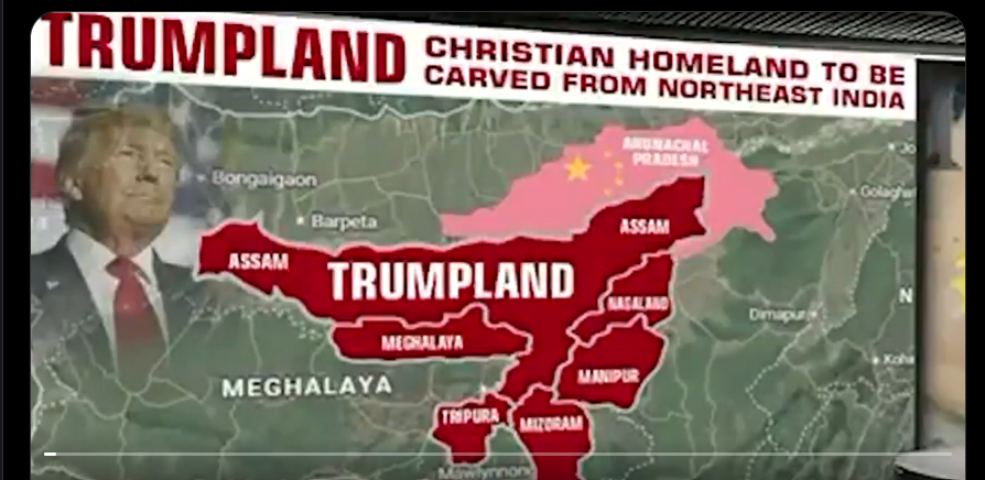 سکھ فار جسٹس تنظیم نے اقوامِ متحدہ کے تسلیم شدہ حقِ خود ارادیت کے تحت شمال مشرقی بھارت میں ایک محفوظ عیسائی وطن “ٹرمپ لینڈ” کا نقشہ جاری کر دیا ،سکھ فار جسٹس جو عالمی خالصتان ریفرنڈم کا انعقاد کر رہا ہے ، نے باضابطہ طور پر "ٹرمپ لینڈ ” کی تجویز پیش کی ہے ، تنظیم کے مطابق ،یہ مجوزہ خطہ امریکی صدر ڈونلڈ جے ٹرمپ کے نام سے منسوب کیا جائے گا،سکھ فار جسٹس کے رہنما گرپتونت سنگھ پنوں نے امریکی صدر سے اس معاملہ میں براہِ راست مداخلت کی اپیل کی ہے ،امریکی صدر ٹرمپ مذہبی آزادی اور دنیا بھر میں مظلوم مذہبی اقلیتوں کے تحفظ کے حامی سمجھے جاتے ہیں