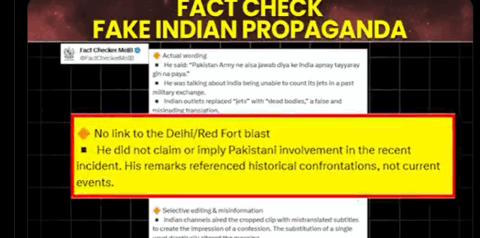 وزارت اطلاعات و نشریات سے جاری اعلامیہ کے مطابق حقیقت میں سابق وزیراعظم آزاد کشمیرکی تقریر سے کچھ اقتباسات ویڈیو کی شکل میں اٹھائے گئے ،سابق وزیراعظم آزاد کشمیر کی تقریر سے اخذ کیے گئے جملے کا دہلی دھماکے سے کوئی تعلق نہیں ، سابق وزیراعظم آزاد کشمیر کی تقریر میں معرکہ حق کا حوالہ دیا گیا ناکہ بھارت کے اندر کسی حالیہ واقع کا ،تراشے ہوئے کلپ میں ایک متبادل لفظ نے جملہ کے معنی کو یکسر بدل دیا ، بھارت کے حکومتی حکام بشمول اجیت ڈوول نے متعدد مواقع پر بھارت میں ممکنہ واقعات کو بلوچستان میں انتقامی کارروائیوں سے جوڑنے کی کوشش کی ،اعلیٰ بھارتی حکام کی جانب سے پاکستان میں دہشت گرد کارروائیوں میں پراکسیز کے استعمال کا کھلے عام اظہار بھی کیا جاتا ہے ،