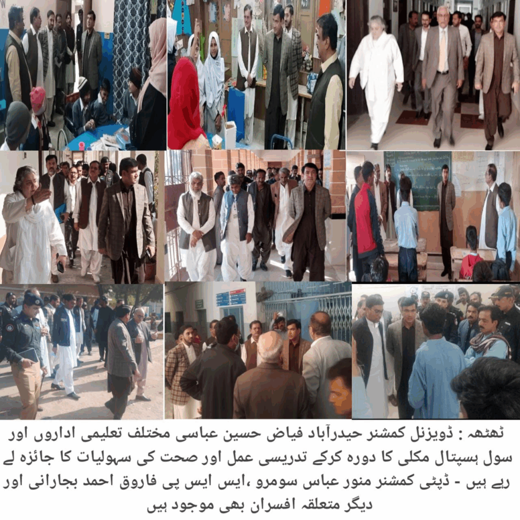 کمشنر نے سندھ یونیورسٹی کیمپس ٹھٹہ، اسپیشل ایجوکیشن سینٹر مکلی اور گورنمنٹ بوائز ہائی اسکول مخدوم محمد ہاشم ٹھٹوی کا بھی دورہ کیا، جہاں تدریسی عمل اور بنیادی سہولیات کا جائزہ لیا۔ انہوں نے کلاس رومز کا معائنہ کیا اور طلبہ سے سوالات کیے۔ کمشنر نے کہا کہ تعلیم ہر انسان کا بنیادی حق ہے اور اساتذہ کو ہدایت دی کہ طلبہ کی تعلیمی بہتری کے لیے مزید محنت کریں اور معیاری تعلیم کے ساتھ اسکولوں میں صفائی ستھرائی کو بھی یقینی بنائیں۔