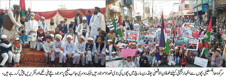 مارچ کے شرکا نے اسرائیل کی مصنوعات کے بائیکاٹ کا اعلان ب کرتے ہوئے کہا کہ اسرائیل کی جانب سے غزہ میں معصوم فلسطینی بچوں کی نسل کشی کا سلسلہ جاری ہےاب تک غزہ میں اسرائیل کے وحشیانہ حملوں کے دوران ہزاروں بچے شہید ہوچکے ہیں۔