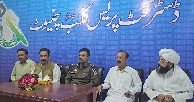ان خیالات کا اظہار ڈی پی او چنیوٹ عبداللہ احمد نے ڈسٹرکٹ پریس کلب کے صحافیوں سے تعارفی ملاقات کے موقع پر کیا اس موقع پر صدر ڈسٹرکٹ پریس کلب چنیوٹ شاہد محمود چوہدری ، جنرل سیکرٹری غلام مرتضیٰ ہیرو ، چئیرمن پروفیشنل میڈیا گروپ اللہ رکھا چوہدری ، جوائنٹ سیکرٹری عامر صدیقی ، سیکریٹری اطلاعات رمضان شعیب ,نائب صدر مہر شوکت ڈاہر،نواب امجد علی، ڈاکٹر مزمل حسین ایڈووکیٹ ، سابق صدر سرور علی چوہدری ، حاجی اکرم ساگر چوہدری ، محبوب عالم بھولا ، کاشف سلطانی ، شیخ سمیر سمی ، بابر منیر ، توصیف الرحمن کانجو ، شاہ زیب چوہدری ، ناصر چوہدری ، ساجد منیر کالرو ، چوہدری دلشاد احمد ، عبدالرحمن کلیار ، جاوید اقبال کامریڈ ، ڈاکٹر ریاض شاہد ، ہارون ملک ڈاکٹر خالد یاسین سمیت دیگر عہدیداروں نے شرکت کی