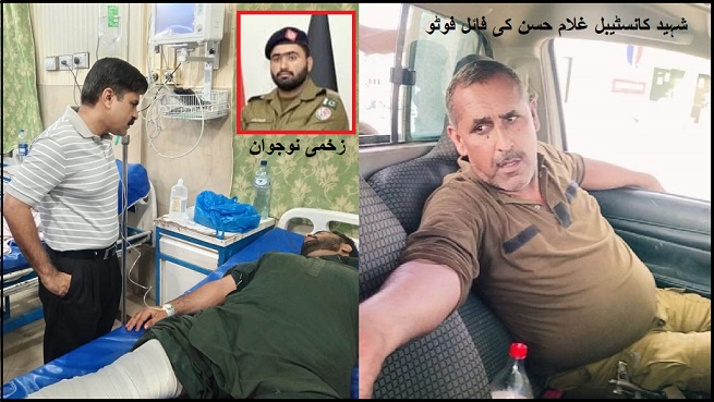 بعد ازاں کانسٹیبل غلام حسن زخموں کی تاب نہ لاتے ہوئے شہید ہو گئے۔ ایس ڈی پی او صدر سرکل پولیس کی بھاری نفری کے ہمراہ موقع پر پہنچ گئے ہیں۔ علاقے کو گھیرے میں لیکر سرچ آپریشن جاری ہے۔