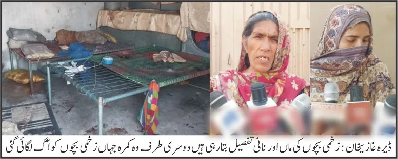 زخمی اور آگ سے جھلس جانے والے بچوں میں ایک نشتر اور دو بچے ٹیچنگ ہسپتال ڈیرہ میں زیر علاج ہیں ، نشتر ہسپتال میں داخل آٹھ سالہ مصباح کی خالت خطرے میں بیان کی جاتی ہے