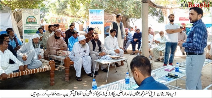 ڈپٹی کمشنر عثمان خالد نے خطاب کرتے ہوئے کہا کہ وزیراعلیٰ پنجاب کا یہ منصوبہ ایک انقلابی قدم ہے جو زمین کی غیر منصفانہ تقسیم اور تنازعات کو ختم کرنے کے لیے متعارف کروایا گیا ہے۔ اراضی کی ڈیجیٹائزیشن اور ای مینجمنٹ کے ذریعے تمام اضلاع میں زمینوں کا ریکارڈ شفاف بنایا جائے گا جس سے خواتین کے وراثتی حقوق کا تحفظ بھی یقینی بنایا جائے گا۔