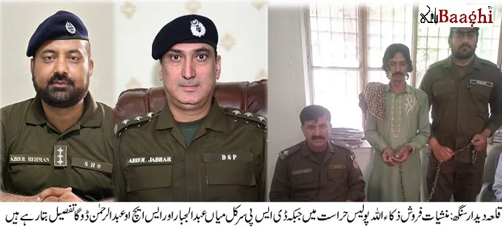 ‘ڈی ایس پی سرکل میاں عبدالجبار اور ایس ایچ او عبدالرحمن ڈوگہ کا کہنا تھا کہ منشیات فروش معاشرے کا ناسور ہیں متعدد گھرانوں کے نوجوانوں کی تباہی کا سبب بن چکے ہیں،یہ کسی رعایت کے مستحق نہیں افسران کے حکم پر منشیات فروشوں کیخلاف شکنجہ کس لیا ہے،منشیات فروشوں کو جیل کی ہوا کھانی پڑے گی