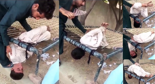 سوشل میڈیا پر بچے کو تشدد کا نشانہ بنانے کی وڈیو وائرل ہوئی ہے ،وڈیو کلپ میں بچے کا سر چارپائی میں جکڑ کر چپلوں سے پیٹا جارہا ہے۔