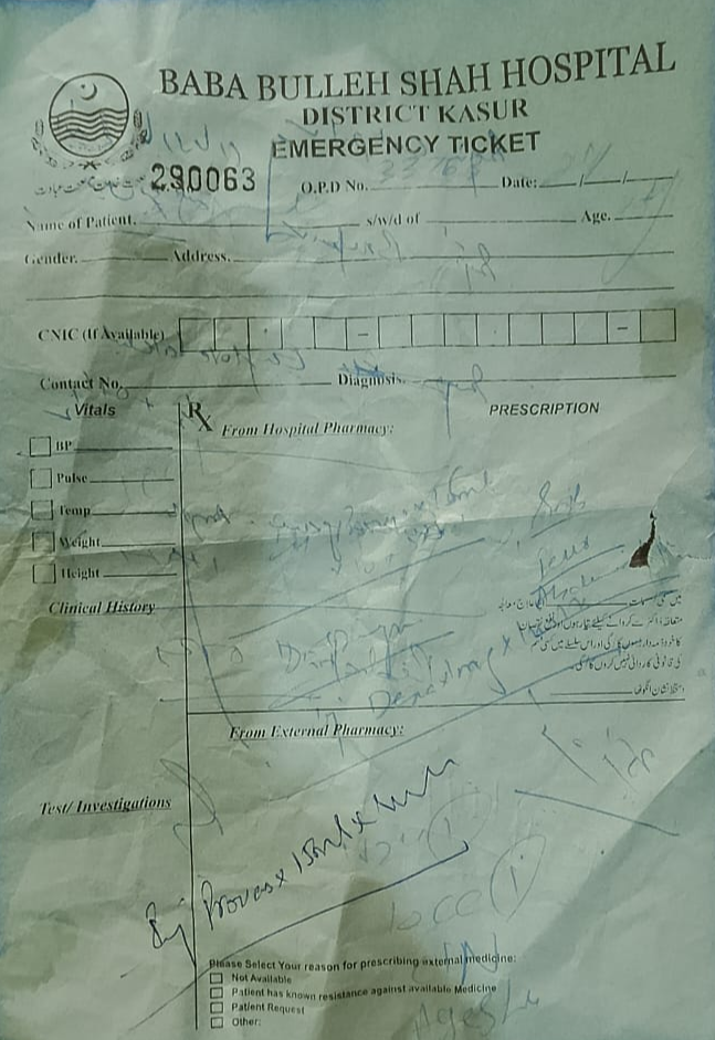 لکھ کر دے دیا گیا جو کہ اسے باہر کے میڈیکل سٹور سے خریدنا پڑا اور ایسا ہر مریض کیساتھ ہے
