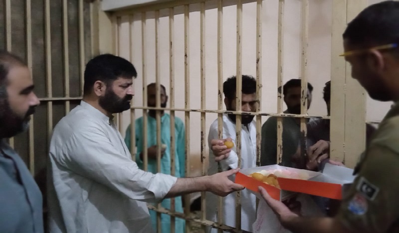 گوجرہ : ڈی ایس پی سرکل کا عید پر تھانہ سٹی کا وزٹ حوالات میں بند قیدیوں میں مٹھائی بانٹی