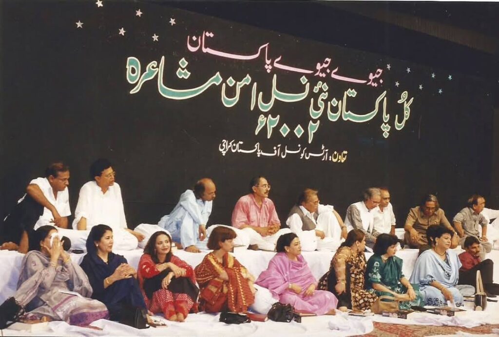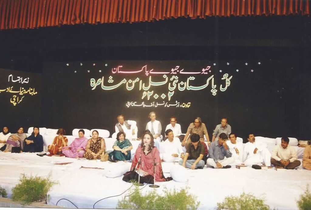 کل پاکستان نئی نسل مشاعرہ جو 2002ء میں دنیائے ادب کے زیرِ اہتمام منعقد کیا گیا۔ بلاشبہ ایک نہایت عمدہ اور یادگار مشاعرہ تھا۔ ایک طرف سینئرز کی کہکشاں تھی اور دوسری طرف نئی نسل کے نمائندہ شعرا کی بہار۔ حمایت علی شاعر صاحب، سحر انصاری صاحب، پیرزادہ قاسم صاحب، انور شعور صاحب اور دیگر کی موجودگی میں کلام سنانا بڑا اعزاز تھا۔