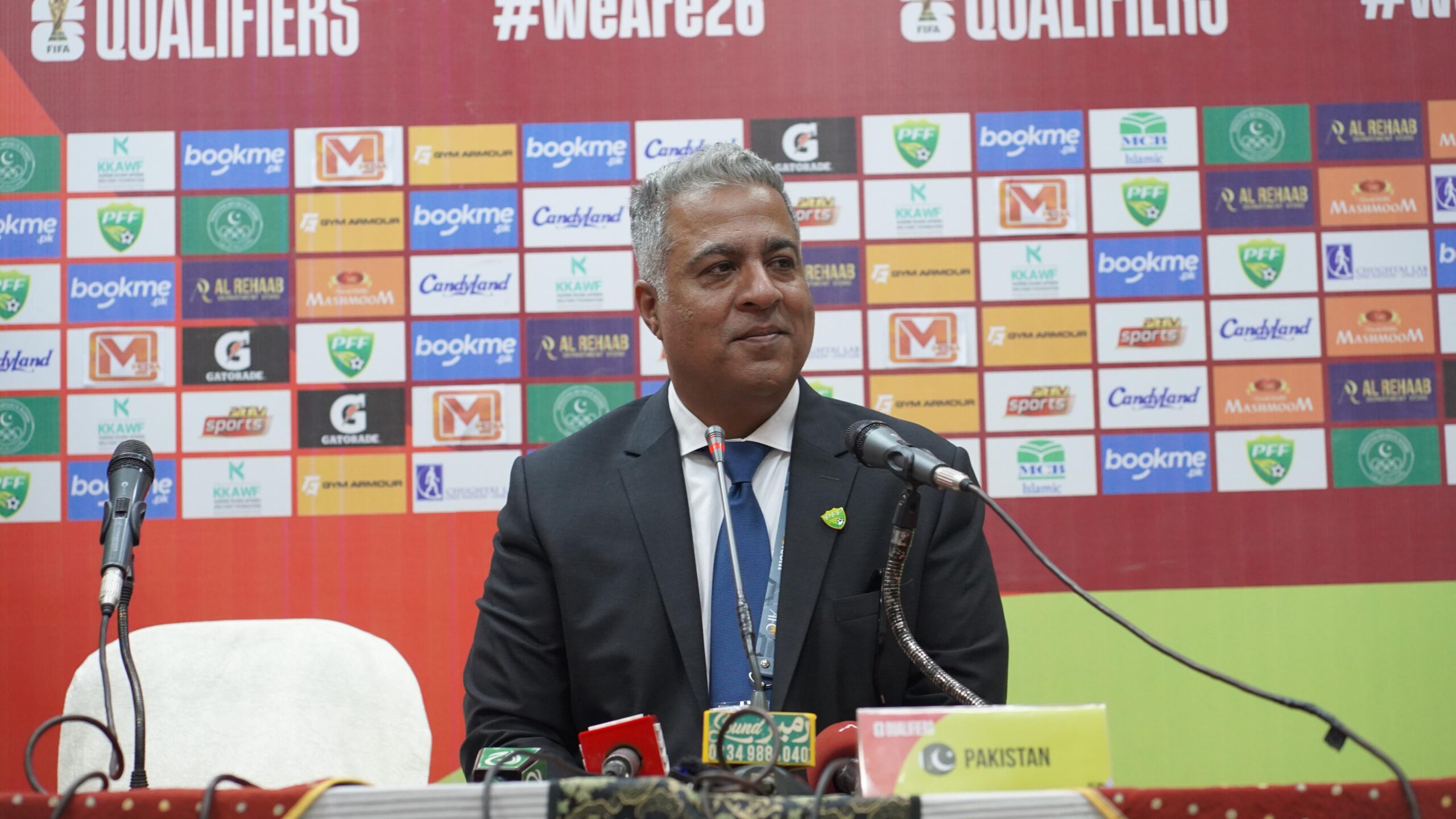 فیفا کوالیفائر دوسرے راؤنڈ کے میچ کے بعد میڈیا سے خطاب کرتے ہوئے کہا کہ ہوم گراؤنڈ پر ایک اور فیفا کوالیفائر کی میزبانی کرنے پر شکریہ ادا کرتے ہے ، جسے 20,000 پرجوش فٹ بال شائقین نے دیکھا۔ انہوں نے قومی ٹیم کے ہیڈ کوچ اسٹیفن کانسٹینٹائن اور کھلاڑیوں کے کردار کا اعتراف کرتے ہوئے کہا کہ میں اسٹیفن کانسٹینٹائن اور اپنے کھلاڑیوں کا شکر گزار ہوں جنہوں نے ہمیں خوشی کے لمحات فراہم کئے۔