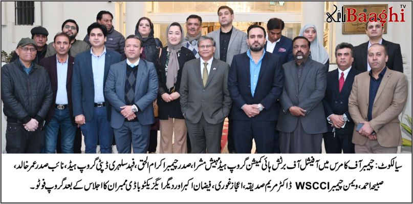 سیالکوٹ ,باغی ٹی وی(بیوروچیف شاہد ریاض)گروپ ہیڈ آف ٹریڈ اینڈ اکانومی اور برطانوی ہائی کمیشن کے پولیٹیکل قونصلر مسٹر مہیش مشرا نے اپنی ٹیم کے ہمراہ ایوان صنعت و تجارت سیالکوٹ کا دورہ کیا۔ چیمبر آف کامرس کے صدر اکرام الحق، نائب صدر عمر خالد اور ایگزیکٹو باڈی ممبران نے مہمانوں کا پھولوں کے گلدستے پیش کر کے پرتپاک استقبال کیا۔