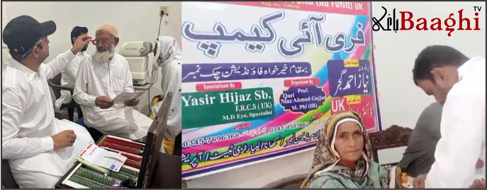 گوجرہ(باغی ٹی وی ،نامہ نگارعبدالرحمن جٹ)گوجرہ کے نواحی گاؤں 162 گ ب نوشہرہ میں 16 واں سالانہ فری آئی کیمپ ڈاکٹر عامر علی ماجد کی زیر سرپرستی اور Go Fund UK کے تعاون سے لگایا گیا۔ اس کیمپ کا مقصد علاقے کے لوگوں کی آنکھوں کے مسائل کا حل پیش کرنا اور انہیں طبی سہولیات فراہم کرنا ہے۔