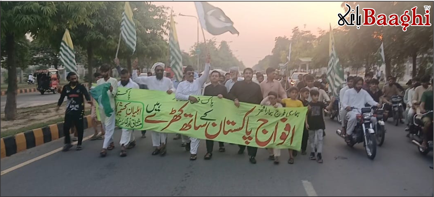 دوسری جانب کشمیر کالونی، عالم چوک اور راہوالی میں بھی ملک توصیف احمد (نائب صدر PFUJ ورکرز) اور نعیم گل کی قیادت میں شاندار ریلیوں کا انعقاد کیا گیا۔ راہوالی شوگر مل اور راہوالی کینٹ گیٹ پر اختتام پذیر ہونے والی ریلیوں میں صحافی برادری، سول سوسائٹی اور سینکڑوں شہریوں نے شرکت کی۔ شرکاء نے جنرل عاصم منیر کی جرأت مندانہ قیادت کو خراج تحسین پیش کیا اور پاک فوج کے حق میں پرجوش نعرے لگائے۔
