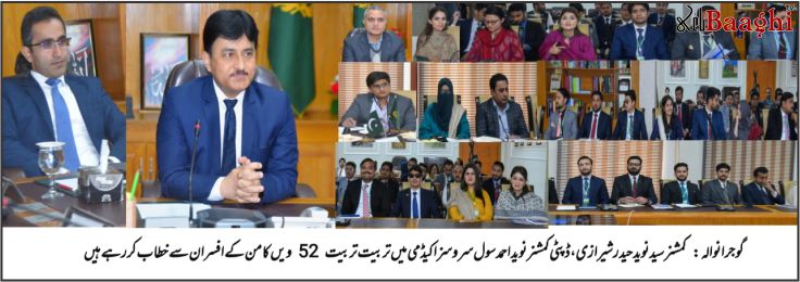 گوجرانوالہ،باغی ٹی وی( نامہ نگار محمد رمضان نوشاہی) کمشنر گوجرانوالہ سید نوید حیدر شیرازی نے کہا ہے کہ حکومت پنجاب کا فوکس گورننس کے معیار کو بہتر بنانا ہے، اور وزیر اعلیٰ پنجاب مریم نواز کے 83 انشی ایٹوز کے تحت اضلاع کی ہفتہ وار رینکنگ کی جاتی ہے۔ وہ سول سروسز اکیڈمی کے 52 ویں کامن کے زیر تربیت افسران سے خطاب کر رہے تھے، جس میں ڈپٹی کمشنر نوید احمد، ایڈیشنل کمشنر کوآرڈی نیشن محمد شفیق اور دیگر اعلیٰ حکام بھی موجود تھے۔