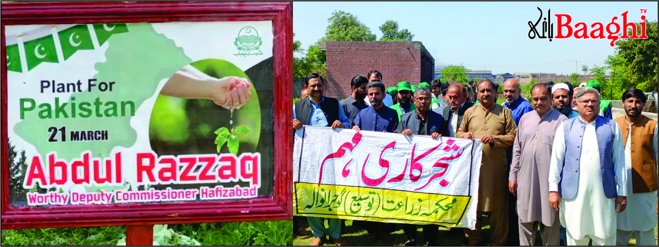 حافظ آباد سے خبر نگار شمائلہ کی رپورٹ کے مطابق حافظ آباد میں ڈپٹی کمشنر عبدالرزاق نے ڈسٹرکٹ کمپلیکس میں پودا لگا کر مہم کا آغاز کیا۔ ضلع بھر میں ایک روز کے دوران تقریباً 60 ہزار پودے لگائے گئے۔ ڈپٹی کمشنر نے تمام سرکاری محکموں، سکولوں، کالجوں، ہسپتالوں اور دیگر اداروں کو پودے لگانے کا ہدف دیا۔ انہوں نے شہریوں سے بھی اپیل کی کہ وہ زیادہ سے زیادہ پودے لگائیں تاکہ ماحول کو صاف ستھرا اور صحت مند بنایا جا سکے۔