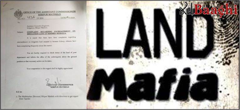 میرپور ماتھیلو(باغی ٹی وی ،نامہ نگارمشتاق لغاری) سومرا کالونی میں محکمہ انہار کی زمین پر بااثر مافیا کا قبضہ،مکین مشکلات کا شکار