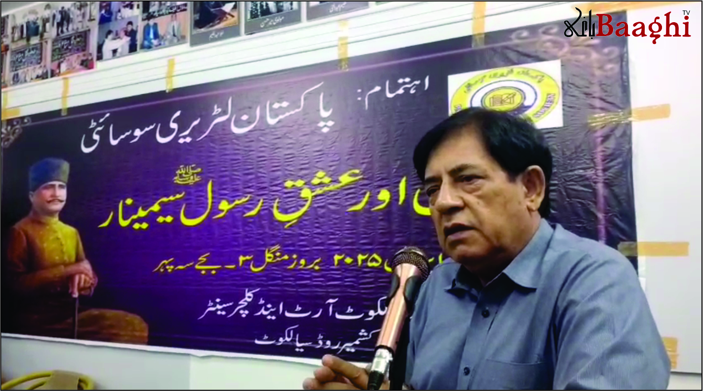 سیالکوٹ/باغی ٹی وی (بیوروچیف شاہد ریاض) پاکستان لٹریری سوسائٹی کے زیر اہتمام سیالکوٹ آرٹ اینڈ کلچر سینٹر میں "اقبال اور عشق رسول (ص)” کے موضوع پر ایک پروقار سیمینار کا انعقاد کیا گیا۔ تقریب کی صدارت سیالکوٹ آرٹ اینڈ کلچر سینٹر کے چیئرمین خالد لطیف نے کی، جبکہ نظامت کے فرائض تاریخ سیالکوٹ کے مؤلف اور مرکزی صدر اشفاق نیاز نے بخوبی انجام دئیے۔