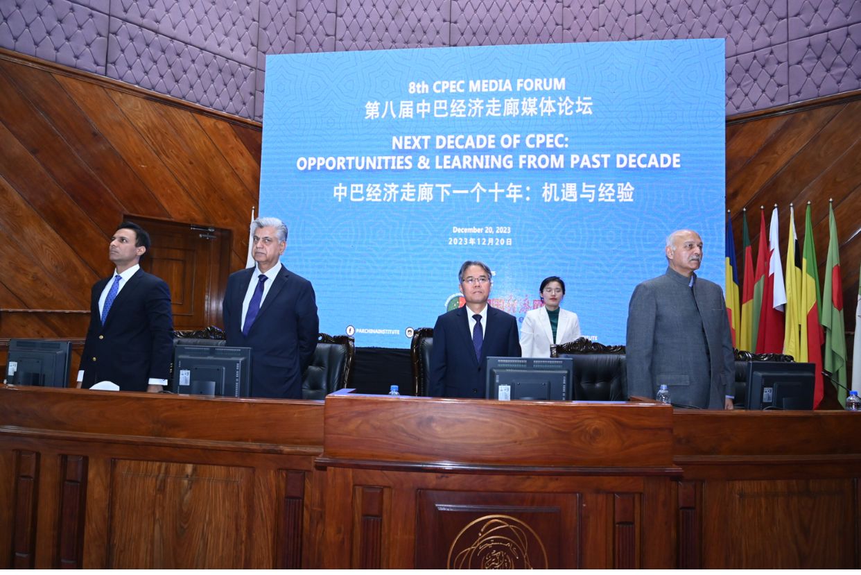 پاکستان چائنا انسٹی ٹیوٹ نے چائنہ اکنامک نیٹ اور عوامی جمہوریہ چین کے سفارت خانہ کے تعاون سے اسلام آباد میں آٹھویں سی پیک میڈیا فورم کا انعقاد کیا۔ فورم میں شرکاء و مقررین نے بیجنگ اور یونیورسٹی آف گوادر سے بھی ورچول طور پر شرکت کی ۔ فورم میں وزیراطلاعات و نشریات نگران وزیر مرتضیٰ سولنگی ، پاکستان میں عوامی جمہوریہ چین کے سفیر ژانگ زیڈونگ ، چیئرمین سینیٹ کمیٹی برائے دفاع اور پاکستان چائنا انسٹی ٹیوٹ سینیٹر مشاہد حسین سید، اکنامک ڈیلی کے صدر اور ایڈیٹر ان چیف ژینگ چنگ ڈونگ، چائنا اکنامک نیٹ کے صدر کیوئی جون، چائنا جرنلسٹ ایسوسی ایشن کے ایگزیکٹو سیکرٹری وو سو، چین میں تعینات پاکستان کے سفیر خلیل ہاشمی، ینئر صحافی حامد میر اور اینکر 92 نیوز ایچ ڈی کی اینکرشفا یوسفزئی نے شرکت کر کے اپنے خیالات کا اظہار کیا،