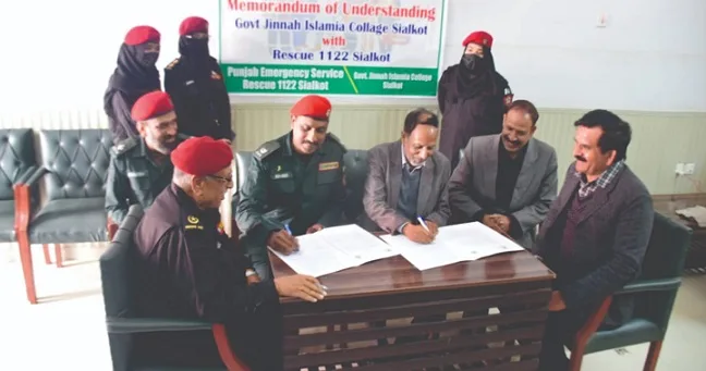 بعدازاں کالج پرنسپل مجاہد حسین بخاری اور ڈسٹرکٹ ایمرجنسی آفیسر انجینئر نوید اقبال نے باہمی یاداشت پر دستخط کیے۔ مزید براں ڈسٹرکٹ ایمرجنسی آفسیر نے کہا کہ اس معاہدہ کے تحت ریسکیو 1122 کالج کے طلباء و طالبات کو زندگی بچانے کی تربیت فراہم کریں گے تا کہ وہ شہر سیالکوٹ کو محفو ظ بنانے میں ریسکیو کا ساتھ دیں۔