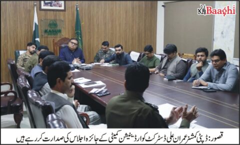قصور (طارق نوید سندھو سے)وزیراعلیٰ پنجاب مریم نواز شریف کی خصوصی ہدایت پر ڈپٹی کمشنر عمران علی کی زیرصدارت ڈسٹرکٹ کوآرڈینیشن کمیٹی کا جائزہ اجلاس منعقد ہوا۔ اجلاس میں پاک آرمی، رینجرز، اسسٹنٹ کمشنرز، ڈسٹرکٹ ہیلتھ آفیسر، ایس ای واپڈا، سول ڈیفنس آفیسر، لائیو سٹاک، ایگری کلچر اور دیگر محکموں کے افسران نے شرکت کی۔