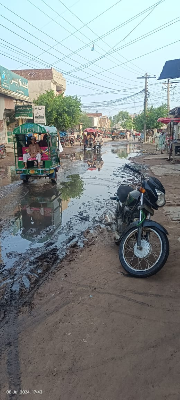 سڑک پر مین ہول کئی دنوں سے بند ہے جس کے باعث پانی سڑک پر کھڑا ہے اور شہریوں کا گزرنا دشوار ہے شہری اپنے گھروں میں قید ہو کر رہ گئے ہیں