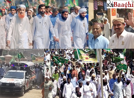 کندھ کوٹ (باغی ٹی وی ،نامہ نگارمختیاراعوان )ملک بھر کی طرح کندھ کوٹ میں بھی جشن عید میلاد النبی صلی اللہ علیہ وآلہ وسلم نہایت جوش و جذبے اور عقیدت کے ساتھ منایا گیا۔ عاشقان رسول کی جانب سے ایک بڑی ریلی نکالی گئی، جس میں سینکڑوں افراد نے شرکت کی۔