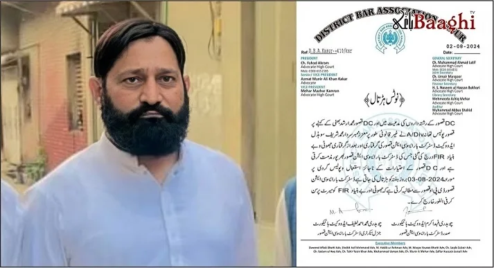 تفصیلات کے مطابق ڈسٹرکٹ بار ایسوسی ایشن قصور نے آج مورخہ 3 اگست کو بانی و چیئرمین ڈسٹرکٹ پریس کلب قصور سردار شریف سوہڈل کی گرفتاری کے خلاف آج ڈسٹرکٹ بار ایسوسی ایشن نے ہڑتال کرکے اظہار یکجہتی کی اور ناجائزمقدمہ اور گرفتاری کی مذمت کی گئی