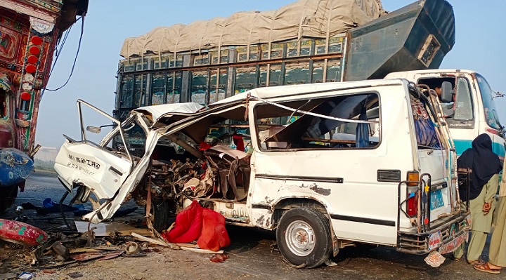 تفصیل کےمطابق تھانہ کریم پور کیڈٹ کالج قومی شاہراہ پر ٹرک اور وین کی آمنے سامنے سے ٹکر ہوگئی جس کے نتیجہ میں وین میں سوار 7 افراد جاں بحق ہوگئے ،متعدد افراد زخمی ہوئے