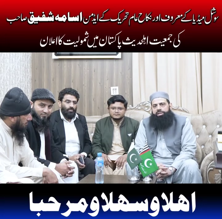 تفصیلات کے مطابق قصور سے تعلق رکھنے والے معروف سوشل میڈیا ایکٹیوسٹ ،یوٹیوبر اور نکاح کو عام کرو تحریک کے ایڈمن اسامہ شفیق راجپوت جمعیت اہلحدیث پاکستان میں شامل ہو گئے