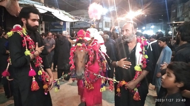 میہڑ،باغی ٹی وی (نامہ نگارمنظورعلی جوئیہ)میہڑمیں شہدائے کربلا امام حسین علیہ اسلام اور انکی جانثار کی عظیم قربانی کی یادمیں حسینی امام بارگاہ سے ذولجناح اور تازیعوں کے ساتھ ماتمی جلوس برآمد، ماتمی جلوس میں سینکڑوں اعزاداروں نے شرکت کرکی، کربلاکے عظیم شہید امام حسین علیہ سلام کی شہادت کی یادمیں نوحے مرثئے اور سینہ گوبی کی گئی،