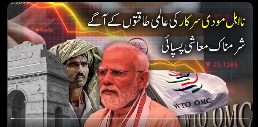 خودمختاری اورگلوبل ساوتھ کی قیادت کا نام نہاد دعویدار بھارت، معاشی ترجیحات پس پشت ڈال کربڑی طاقتوں کے دباو کے سامنے ڈھیر ہو گیا،بھارتی جریدہ دی وائر نے بھارت کی ناکامیوں کو مودی سرکار کے ڈبلیوٹی او کانفرنس سے خالی ہاتھ لوٹنے کے مترادف قرار دیا، جریدہ نے ورلڈ ٹریڈ آرگنائزیشن کانفرنس میں گھٹنے ٹیکنے پر نااہل مودی کو تنقید کا نشانہ بناتے ہوئے واضح کیاکہ بھارت نے ڈیجیٹل مواد کی ترسیل پر کسٹم ڈیوٹی نہ لگانے کی امریکی شرط کو قبول کرنے کا واضح اشارہ دیا،ڈبلیو ٹی او کانفرنس میں بھارت نے سرمایہ کاری سہولت معاہدہ کسی مزاحمت کے بغیر ہی قبول کرلیا، بھارت نے اپنے کسانوں سے غداری اور امریکہ کی وفاداری کرکے خوراک کی عوامی ذخیرہ اندوزی پربھی شکست قبول کی