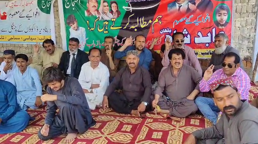 میرپور ماتھیلو(نامہ نگارمشتاق لغاری) پنوعاقل سے اغوا کیے گئے معصوم سید عابد شاہ پٹھان کی بازیابی کے لیے آج 14ویں روز بھی علامتی بھوک ہڑتال جاری رہی۔ احتجاج میں ورثاء سمیت مختلف سیاسی و سماجی رہنماؤں نے بھرپور شرکت کی اور مغوی کی فوری بازیابی کا مطالبہ کیا۔