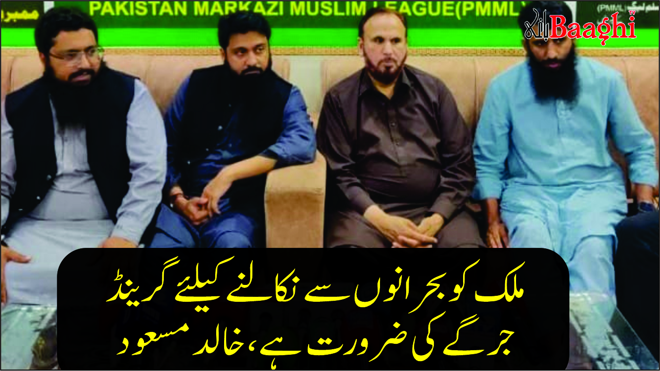 خالد مسعود سندھو نے کہا کہ مرکزی مسلم لیگ قوم کے اتحاد کیلئے کوشاں ہے اور انہوں نے گرینڈ جرگے کیلئے صدر مملکت کو خط لکھا ہے۔ انہوں نے کہا کہ اس جرگے میں تمام سیاسی قیادت اور سٹیک ہولڈرز کو بلایا جائے اور ملک کو بحرانوں سے نکالنے کیلئے حکمت عملی بنائی جائے۔ انہوں نے خبردار کیا کہ جو لوگ اس جرگے میں نہیں آئیں گے، قوم ان کا احتساب کرے گی۔