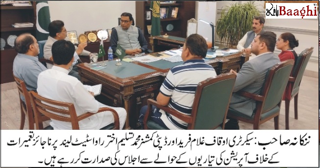 اجلاس میں بتایا گیا کہ واربرٹن روڈ اور ننکانہ بائی پاس پر موجود متروکہ وقف املاک کی زمینوں پر بنائی گئی غیر قانونی تعمیرات کو ہٹانے کے لیے بڑے پیمانے پر آپریشن کیا جائے گا۔ اس آپریشن میں ضلعی انتظامیہ کے ساتھ ساتھ پولیس کی بھی بڑی تعداد شریک ہوگی۔