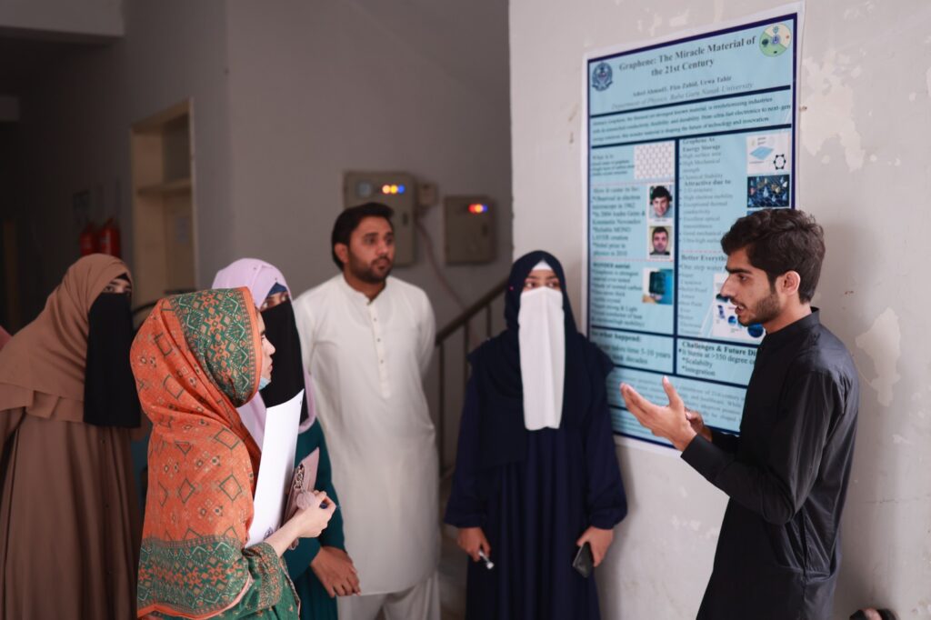 دوسرے روز طلبہ کی جانب سے پوسٹر پریزنٹیشنز کا اہتمام کیا گیا جس میں شعبہ فزکس کے طلبہ نے پائیدار توانائی سے متعلق تحقیقی منصوبے پیش کیے۔ پوسٹر مقابلے کے ججز میں ڈاکٹر قدسیہ مشتاق (شعبہ زولوجی)، ڈاکٹر عدیل غفار (شعبہ بوٹنی)، اور محترمہ عمارہ ارشاد (شعبہ کیمسٹری) شامل تھیں، جنہوں نے طلبہ کی پیشکشوں کا غیرجانبدارانہ جائزہ لیا۔