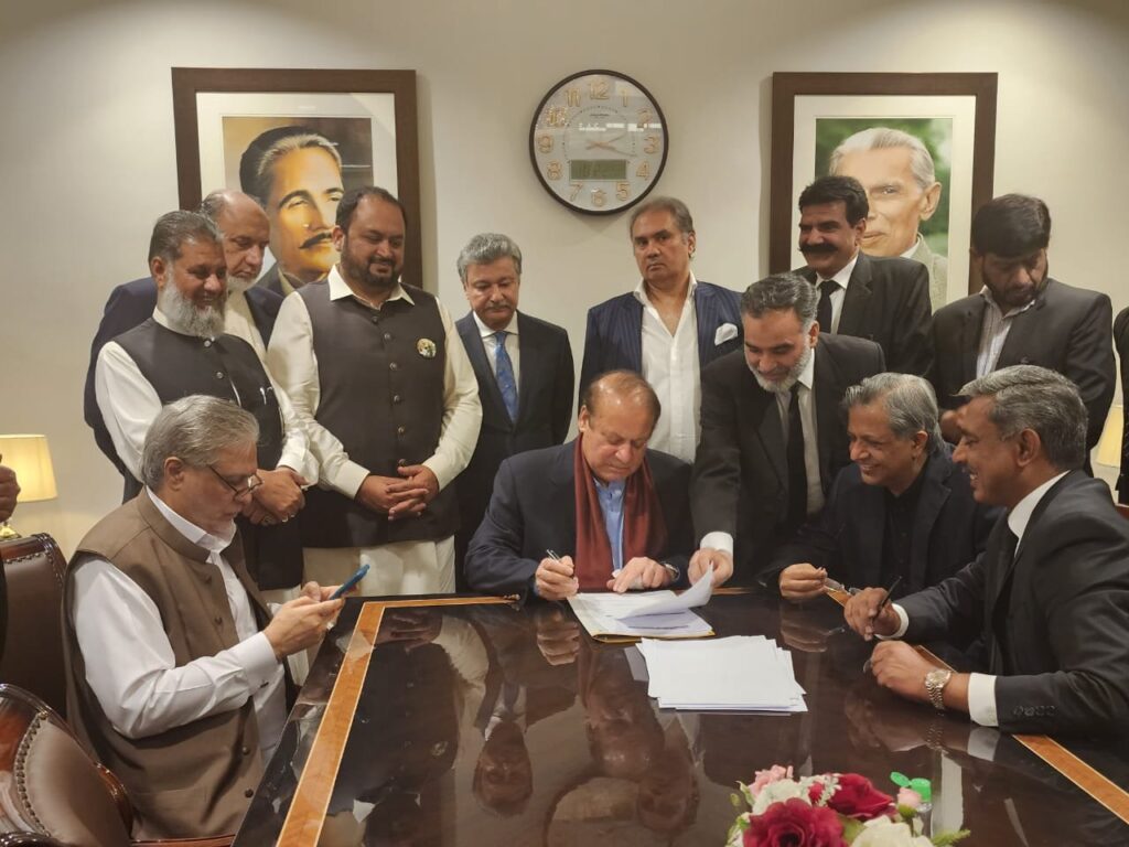 نواز شریف کی اسلام آباد آمد،کاغذات پر دستخط،تصاویر