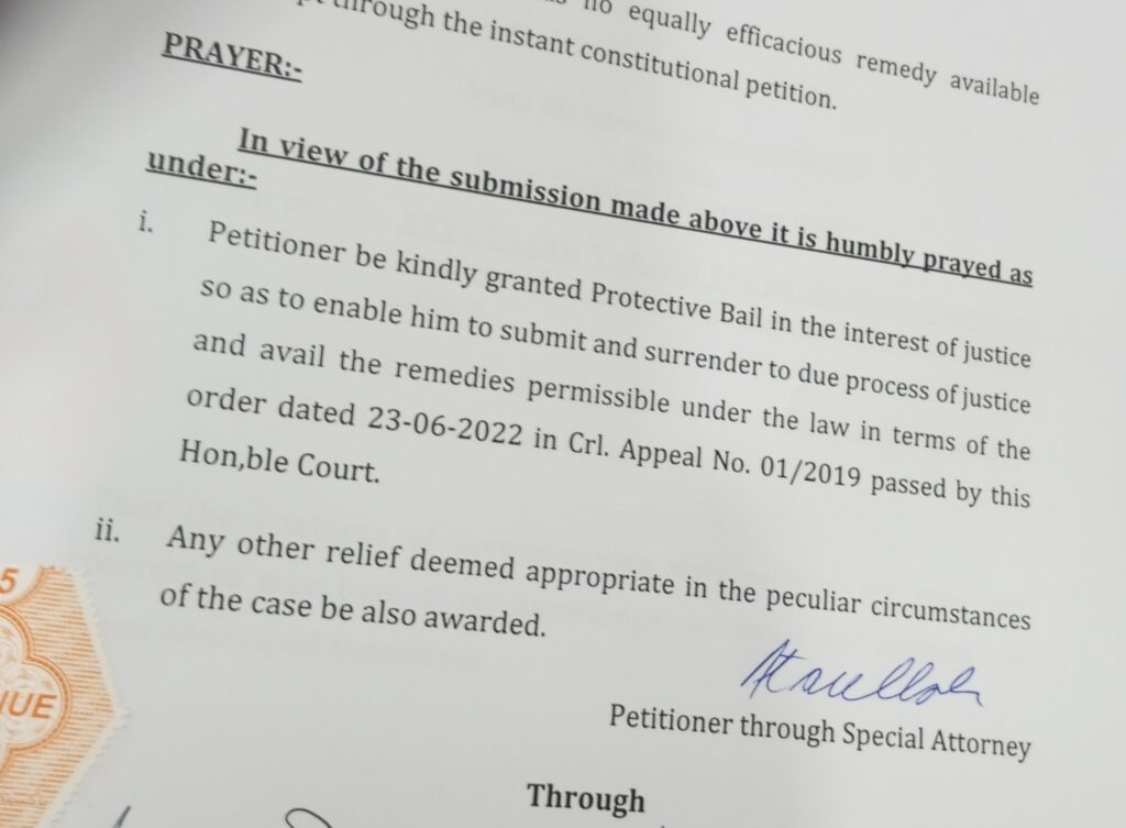 قبل ازیں سابق وزیر اعظم  نواز شریف کی حفاظتی ضمانت کی درخواست اسلام آباد ہائیکورٹ میں دائر کر دی گئی،نواز شریف کی ایون فیلڈ اور العزیزیہ ریفرنس میں حفاظتی ضمانت دائر کی درخواست دائر کی گئی،اسلام آباد ہائیکورٹ کے فیصلے کی روشنی میں حفاظتی ضمانت دائر کی درخواست دائر کی گئی،نواز شریف کی حفاظتی ضمانت کی درخواست میں کہا گیا ہے کہ عدالت کے سامنے سرنڈر کرنے کے لیے حفاظتی ضمانت منظور کی جائے کیسز کا سامنا کرنا چاہتے ہوں عدالت پہنچنے کے لیے گرفتاری سے روکا جائے،درخواست پر سماعت کے لیے آج ہی بینچ بنا کر سماعت کرنے کی استدعا کی گئی.درخواست میں کہا گیا ہے کہ نواز شریف اسپیشل فلائٹ سے اسلام آباد آرہے ہیں،