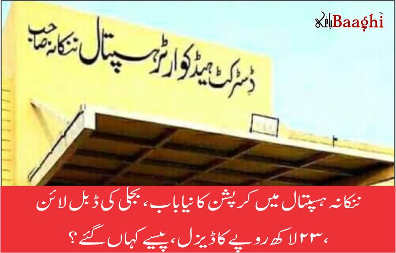 ننکانہ صاحب( باغی ٹی وی کے نامہ نگار احسان اللہ ایاز )ننکانہ ہسپتال میں کرپشن کا نیا باب،بجلی کی ڈبل لائن،23 لاکھ روپے کا ڈیزل، پیسے کہاں گئے؟