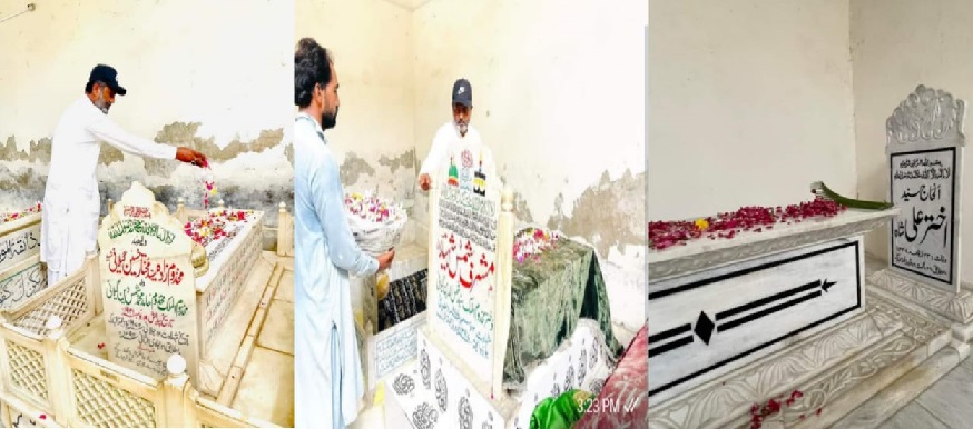 اور اپنے والد محترم سید اختر علی شاہ گیلانی اور ولی عہد مخدوم سید مختار حسن گیلانی مزار حضرت محبوب سبحانی اور دختر مخدوم الملک مخدوم سید شمس الدین گیلانی سیدہ مشرف شمس شہید کی مزار پر حاضری دی اور عرق گلاب سے غسل دیا اور پھول نچھاور کیے اور انکی مغفرت کے لیے دعا کی