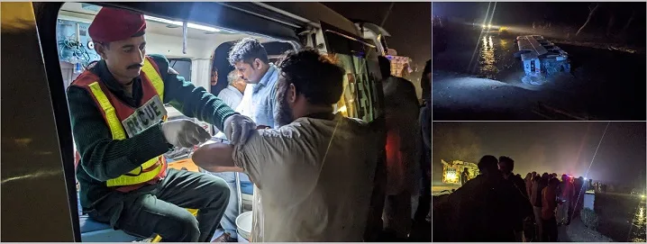 ریسیو 1122 ترجمان کے مطابق ریسکیو کنٹرول روم کو کال موصول ہوئی کالر نے بتایا کہ ایک تیز رفتار بس موڑ کاٹتے ہوئے نہر میں گر گئی ہے۔ حادثہ 11موڑشاہی والا ہیڈراجکان کے قریب تحصیل یزمان کی حدود میں پیش آیا،